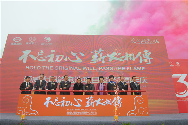2016年11月18日,通威太陽能電池項目投產(chǎn)三周年慶隆重舉行。三年來,通威太陽能公司不斷提高精細(xì)化、現(xiàn)代化、規(guī)模化、標(biāo)準(zhǔn)化管理,各項生產(chǎn)指標(biāo)領(lǐng)先行業(yè),已實現(xiàn)全球電池片環(huán)節(jié)生產(chǎn)成本最低、電池品質(zhì)客戶端評價最優(yōu)、電池出貨量全國最大、開工率全行業(yè)最高、電池產(chǎn)能規(guī)模全球第一。