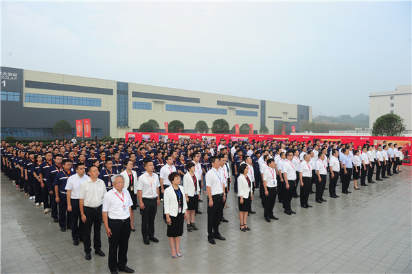 2016年8月8日上午8點8分,通威太陽能(成都)有限公司項目竣工首次升旗儀式隆重舉行。升旗儀式后,通威集團董事局劉漢元主席發(fā)表重要講話指出,隨著雙流5GW高效晶硅電池項目一期的竣工,通威太陽能(成都)有限公司的發(fā)展開啟了全新篇章,必將以最快的速度、最高的效率,昂首闊步在神州大地。