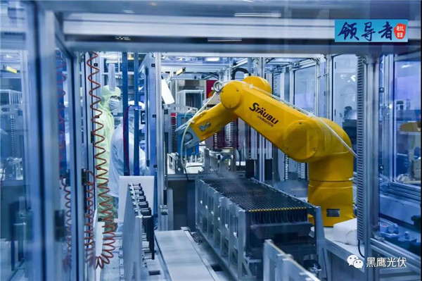 通威太陽能智能制造生產(chǎn)線分選工序機械手對電池片進(jìn)行自動分選