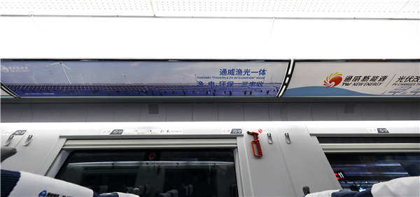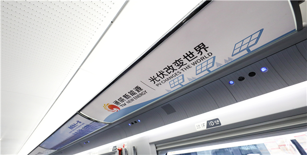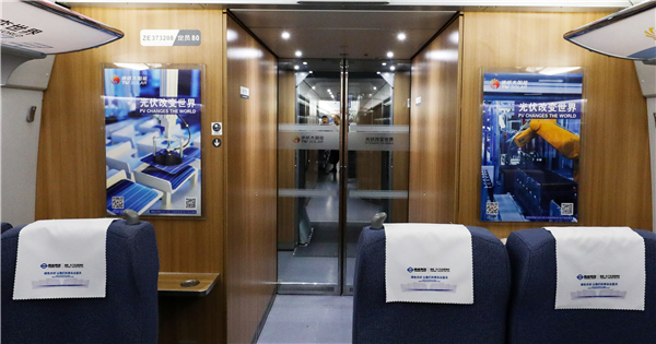 高鐵專列內的通威“漁光一體”展示