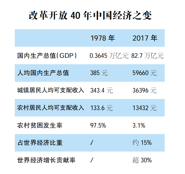 1978年年末,中國共產黨十一屆三中全會召開。會議高度評價了關于實踐是檢驗真理的唯一標準的討論,重新確立“解放思想、實事求是”的思想路線,作出了改革開放這一“決定當代中國命運的關鍵抉擇”,改革的歷史就此開啟。從農村到城市,從試點到推廣,從經濟體制改革到全面深化改革,40年眾志成城,40年砥礪奮進,40年春風化雨,在“改革開放總設計師”鄧小平的帶領下,從1978年再次出發的中國,開始締造震撼世界的“中國奇跡”。