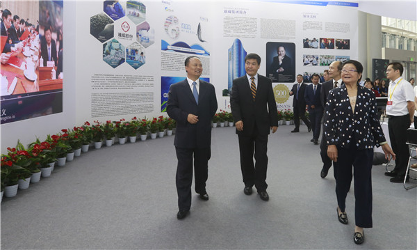 在劉漢元主席陪同下,顧秀蓮副委員長、羅強市長等領導一行參觀通威展臺