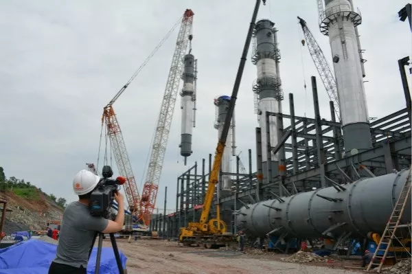 當(dāng)天下午,永祥股份樂山高純晶硅及配套新能源項目建設(shè)工地緊張而忙碌,四川衛(wèi)視鏡頭牢牢鎖定,現(xiàn)場直播了精餾塔的吊裝過程。該設(shè)備是用于高純晶硅原材料的提純使用,隨著精餾塔的吊裝,意味著新項目的生產(chǎn)線正式進入到了設(shè)備安裝環(huán)節(jié)。永祥股份四川新能源有限公司總經(jīng)理助理羅周向記者介紹道,這條生產(chǎn)線是目前全球單線產(chǎn)能最大的高純晶硅生產(chǎn)線,由永祥獨立自主設(shè)計并擁有自主知識產(chǎn)權(quán),預(yù)計今年9月首批世界領(lǐng)先的高純晶硅將在這里下線。
