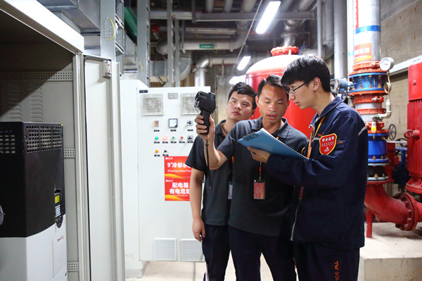 成都基地安全檢查人員正在用紅外熱成像儀測試設備溫度