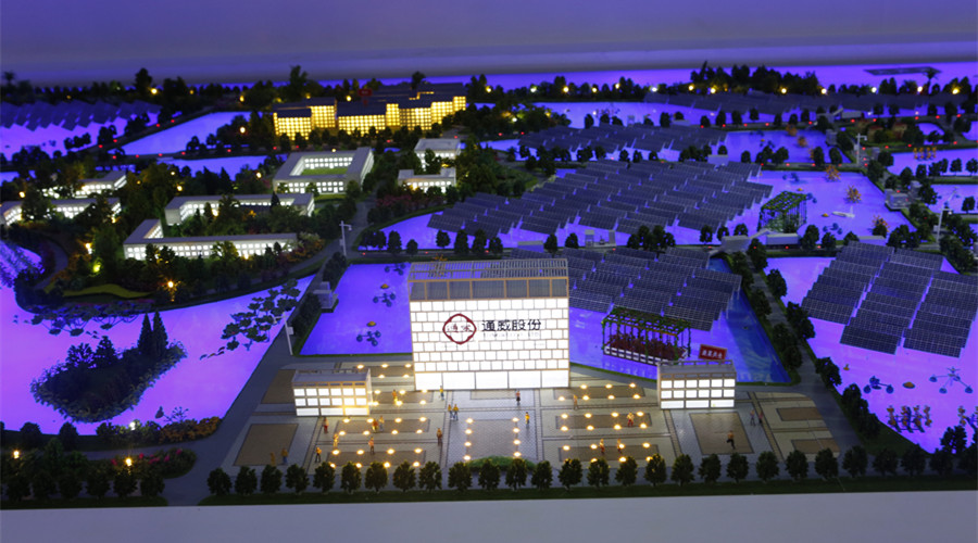 通威股份“漁光一體”智能運(yùn)營中心通過圖文展示“漁光一體”創(chuàng)新模式、關(guān)鍵技術(shù)解析、全國項(xiàng)目分布及共享經(jīng)濟(jì)商業(yè)模式,并專門針對規(guī)劃建設(shè)中的通威“漁光一體”示范產(chǎn)業(yè)園區(qū)制作了電子沙盤,結(jié)合3D漫游視頻做了詳細(xì)詮釋,零距離呈現(xiàn)出一片生機(jī)盎然、青山綠水、鳥語花香的童話世界,讓人身臨其境、印象深刻并充滿向往。