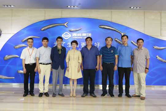 9月11日下午,山東省濱州市北海新區黨工委書記、管委會主任李勇,濱州市發展和改革委員會黨組副書記劉連營一行蒞臨通威參觀考察,通威集團禚玉嬌總裁熱情接待并座談。深圳通威新能源有限公司總經理、濱州通匯海洋科技有限公司總經理鄧衛平,濱州通匯海洋科技有限公司常務副總經理萬國權陪同接待。