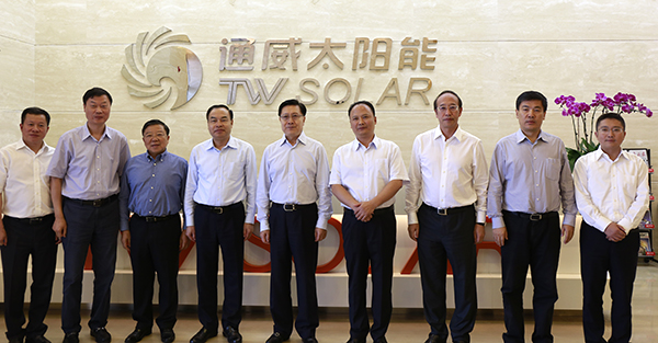 9月6日,中共四川省委王東明書記蒞臨通威太陽能(成都)有限公司考察調研,中共四川省委常委、省委秘書長吳靖平以及省發改委、省經信委主要領導陪同,成都市委書記唐良智,市委副書記、代市長羅強,雙流區委書記周先毅,雙流區委副書記、區長徐剛等陪同調研。十一屆全國政協常委、通威集團董事局劉漢元主席,集團禚玉嬌總裁,副總裁黃其剛,通威太陽能(合肥、成都)有限公司董事長謝毅熱情接待。