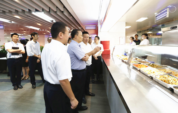 剪彩結束后,在張鯤總經理、集團副總裁黃其剛的陪同下,劉主席視察了格外餐廳的服務窗口,詳細詢問了餐廳的菜品種類、價格等情況,囑咐餐廳要持之以恒地做好服務,為大家提供更多、更好的可口美食。