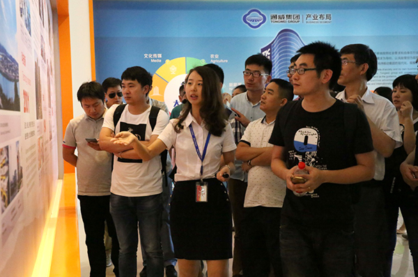 在公司展廳,講解員向來賓介紹了通威集團興業歷程、企業文化、科研實力等板塊,并詳細介紹了通威太陽能合肥公司發展歷程及目前的生產情況,蔣教授一行對公司展廳及企業文化建設工作給予高度贊賞,并表示這對于民營企業而言具有很大的借鑒意義。