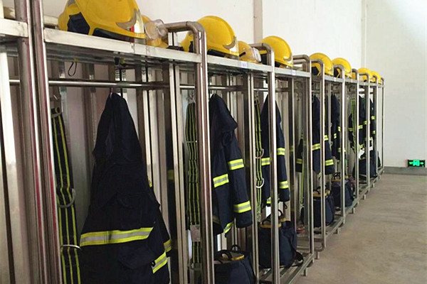 整齊放置的消防隊戰斗服