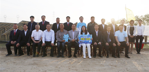 劉漢元主席與李可心副站長一行在如東“漁光一體”基地合影留念