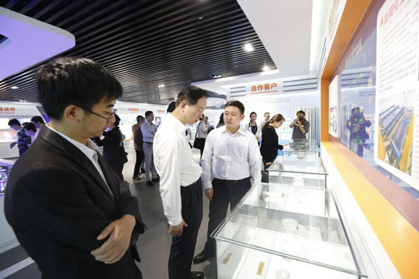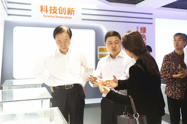 永祥股份董事長兼總經(jīng)理段雍與參觀“體驗中心”的嘉賓交流
