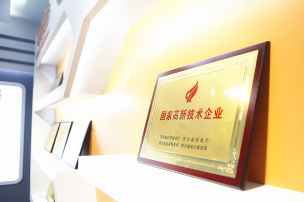 資質(zhì)榮譽墻上的“國家高新技術(shù)企業(yè)”獎牌