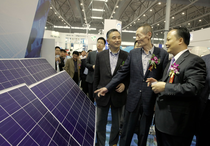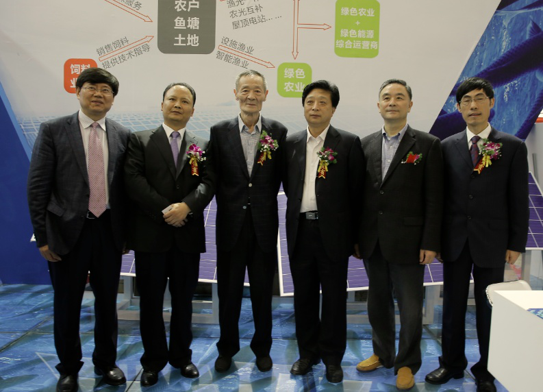 開幕式結束后,高鴻賓會長等一行領導在劉主席的陪同下到通威展臺參觀,劉主席向高會長詳細地介紹了通威“漁光一體”創新模式。通威“漁光一體”項目以光伏發電站為主,漁業養殖為輔,結合通威365健康養殖模式,拓展了通威太陽能光伏技術應用領域,通過“水上產出清潔能源、水下生產安全通威魚”,達到光伏發電與漁業養殖的一體化有機結合,實現了“魚、電、環保”三豐收。