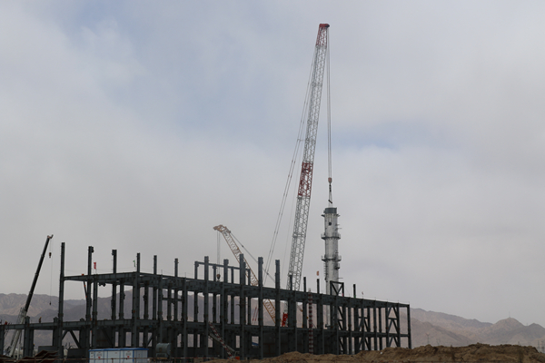 永祥股份包頭5萬噸高純晶硅及配套新能源項目(一期)首節(jié)精餾塔順利完成吊裝