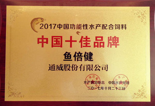 通威魚倍健榮膺“2017中國功能性水產配合飼料十佳品牌”