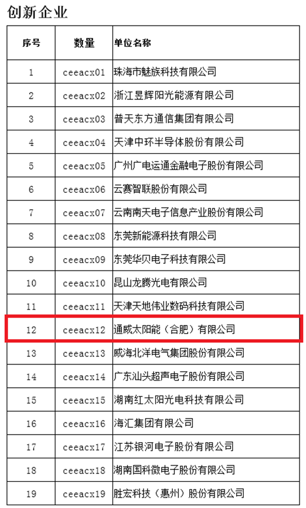 通威太陽能(合肥)有限公司入列2017全國電子信息行業優秀企業公示榜單