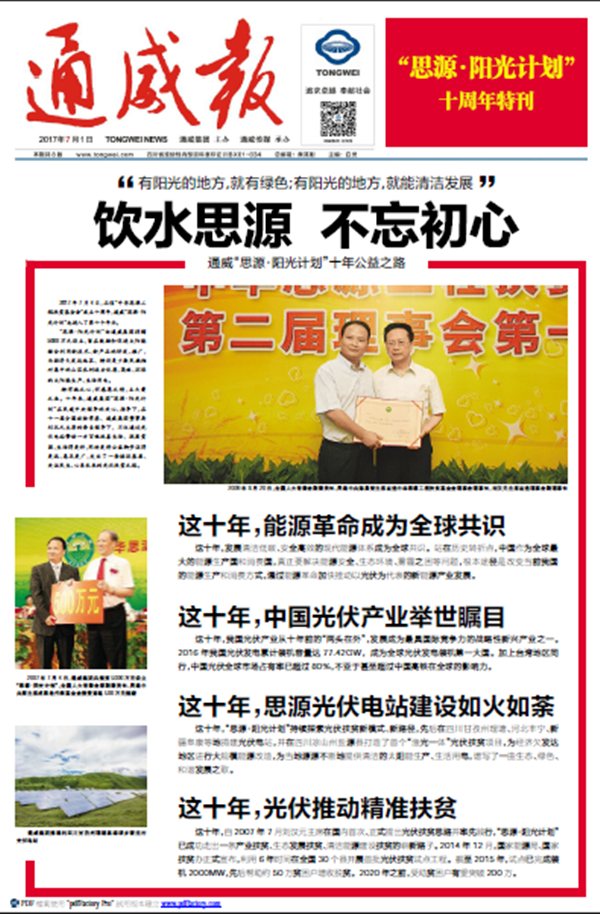 通威“思源•陽光計劃”十周年特刊隆重出刊