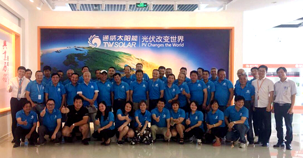 江蘇曜朗太陽能工程有限公司總經理管玉明率經銷商團隊一行蒞臨通威太陽能(合肥)有限公司調研