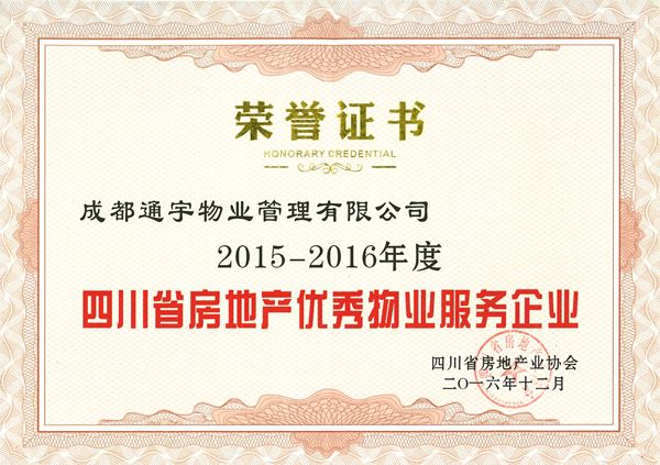 通宇物業(yè)榮獲“四川省房地產(chǎn)優(yōu)秀物業(yè)服務企業(yè)”稱號