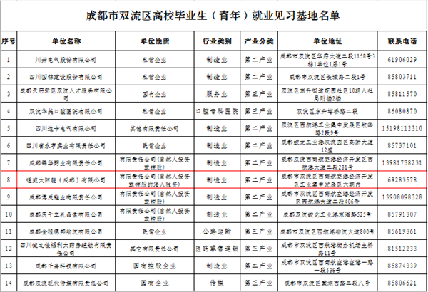 通威太陽能成功申報雙流區(qū)高校畢業(yè)生見習(xí)基地
