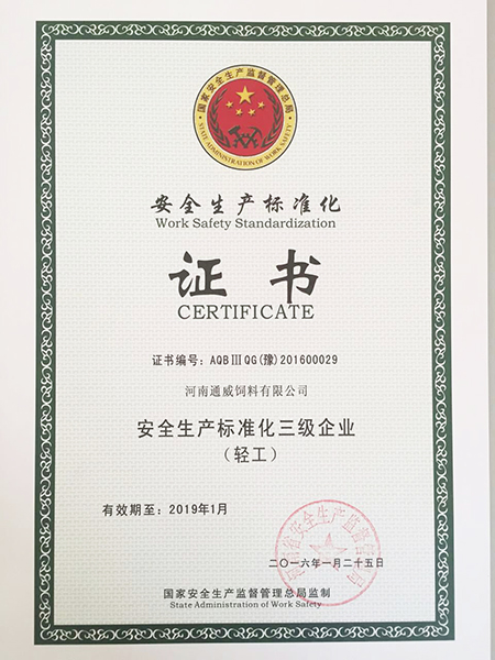 河南通威獲“安全生產標準化三級企業”證書