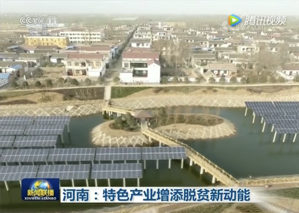 1月14日,中央電視臺《新聞聯播》再度聚焦光伏扶貧,播出了《河南:特色產業增添脫貧新動能》專題,重點介紹了河南在產業扶貧上因地制宜,通過漁光模式增添扶貧新動能,2018年新年開始,拉開光伏繼續霸屏央視的序幕。
