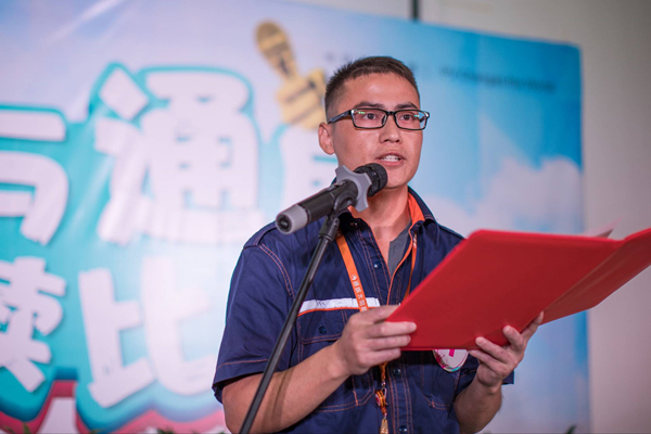 兩地比賽現(xiàn)場,102位來自公司各崗位的朗讀者們或鏗鏘激昂、或滿懷深情,將無聲的文字用真摯的情感訴說。《通威集團企業(yè)文化故事集》中的感人故事、《那些年,我們在一起的日子》中的精彩文章都備受選手們的青睞,獨具風格的原創(chuàng)作品也在現(xiàn)場贏得陣陣掌聲。來自合肥公司信息管理部的李琳,用深情的話語將同事的原創(chuàng)作品《秋日下的通威》娓娓道來;而成都公司行政部黃其淋等6人朗讀的《我是意氣風發(fā)的通威人》更是情感真摯、詩情飛揚。
