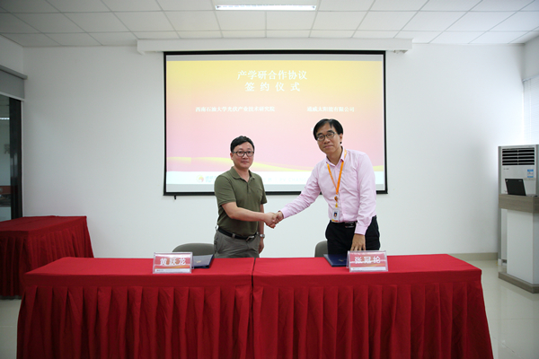 7月17日,西南石油大學(xué)光伏產(chǎn)業(yè)技術(shù)研究院院長(zhǎng)黃躍龍一行蒞臨通威太陽(yáng)能(成都)有限公司,與高管團(tuán)隊(duì)密切座談后,在前期光伏學(xué)院主導(dǎo)簽訂執(zhí)行的《人才培養(yǎng)戰(zhàn)略協(xié)議》基礎(chǔ)之上進(jìn)一步簽訂了《產(chǎn)學(xué)研合作協(xié)議》。