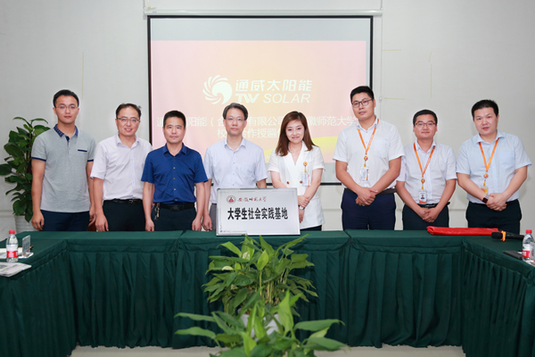 7月7日,通威太陽能(合肥)有限公司校企合作社會實踐基地授牌儀式在公司培訓教室隆重舉行。安徽師范大學物電學院黨委副書記吳長義、副院長崔光磊應邀出席本次儀式,公司中干團隊熱情接待。