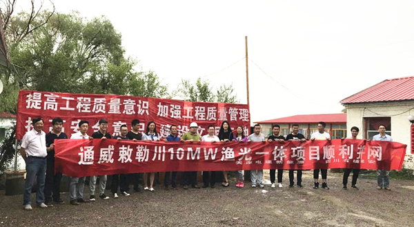 項目人員齊賀通威敕勒川10MW“漁光一體”項目成功并網