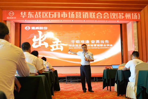 6月27日,通威股份華東戰區6月市場營銷聯合會議蘇州場在蘇州隆重召開。通威股份副總裁兼華東戰區總裁王尚文出席會議。華東戰區各線路總監,無錫、紹興通威各部門經理列席會議。本次會議就蘇州、無錫、紹興通威2017年上半年營銷管理工作進行交流總結。