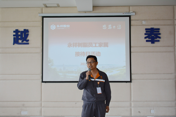 緊接著,來(lái)到座談現(xiàn)場(chǎng),在其樂(lè)融融的氛圍中,永祥樹(shù)脂人事行政部經(jīng)理陳君向大家介紹了通威、永祥的發(fā)展史和未來(lái)的發(fā)展目標(biāo)。在相互交流環(huán)節(jié),各位員工家屬紛紛發(fā)言。一位年邁的母親用六個(gè)“不得了”來(lái)表達(dá)自己對(duì)永祥變化的贊嘆。在質(zhì)樸無(wú)華的言語(yǔ)中,大家表示很榮幸有機(jī)會(huì)參觀(guān)永祥,感嘆公司變化特別大,廠(chǎng)區(qū)實(shí)景比宣傳視頻中的看著還漂亮,生產(chǎn)作業(yè)安全、標(biāo)準(zhǔn),可直觀(guān)監(jiān)測(cè)全廠(chǎng)各崗位的生產(chǎn)、操作狀況。公司給予員工的福利好,關(guān)心員工發(fā)展,作為家人的他們很放心,并且感到高興。日后,會(huì)多多關(guān)心與支持家人的工作,鼓勵(lì)他們?yōu)橛老槎嘧鲐暙I(xiàn)。