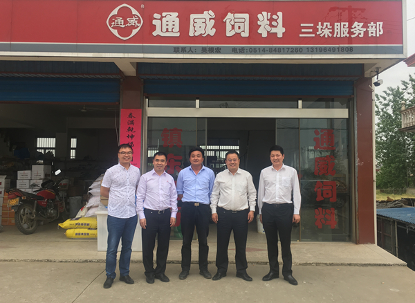 通威股份郭異忠總裁一行視察揚州通威司徒服務部并與經銷商合影留念