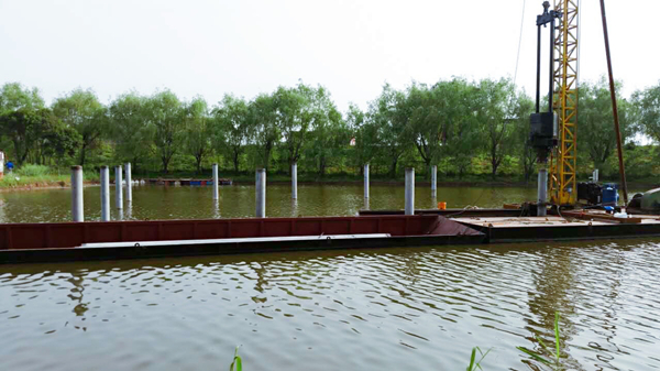揚(yáng)中項(xiàng)目二期4MW“漁光一體”項(xiàng)目水上打樁作業(yè)正在進(jìn)行