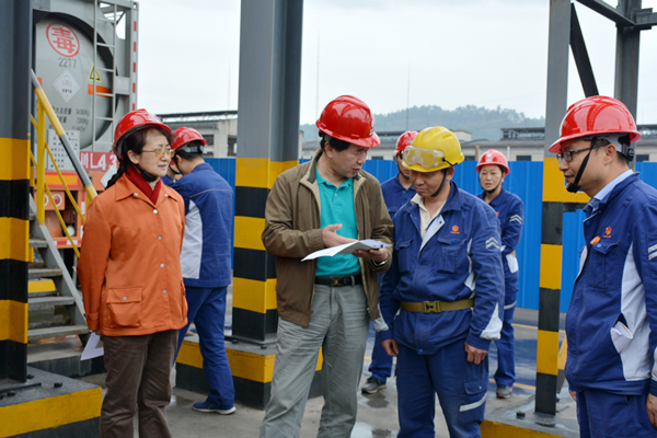 4月21日,四川省特種設備安全協(xié)會高級工程師袁曉峰、工程師薛維億組成鑒定評審組,在樂山市質量技術監(jiān)督局副科長蔣佳順的陪同下,蒞臨永祥股份評審移動式壓力容器充裝許可。永祥股份副總經(jīng)理、永祥樹脂執(zhí)行總經(jīng)理周宗華,永祥樹脂總經(jīng)理助理李業(yè)新,永祥樹脂副總工程師杜亦軍,永祥樹脂安全環(huán)境部經(jīng)理李繼承等相關領導陪同。