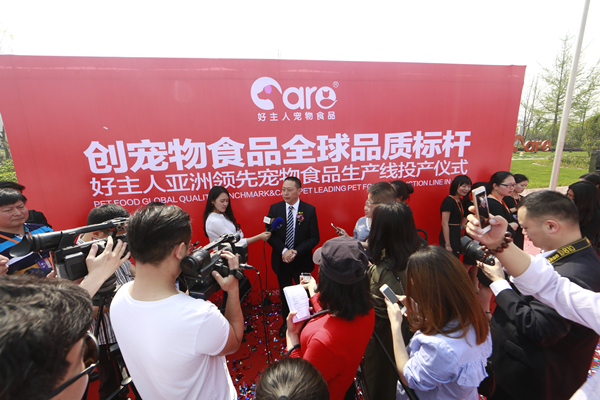 4月19日,好主人亞洲領(lǐng)先寵物食品生產(chǎn)線投產(chǎn)儀式于雙流好主人公司新廠區(qū)隆重舉行。通威集團(tuán)副總裁黃其剛出席儀式并宣讀通威集團(tuán)董事局劉漢元主席賀信,成都好主人寵物食品有限公司執(zhí)行董事祝啟明、通威股份生產(chǎn)部部長陳興偉、成都好主人寵物食品有限公司常務(wù)副總經(jīng)理?xiàng)詈楹!⒊啥己弥魅藢櫸锸称酚邢薰旧a(chǎn)部經(jīng)理潘渝鋒、揚(yáng)州科潤德機(jī)器設(shè)備有限公司副總經(jīng)理徐美松、美國奧特奇生物制品有限公司中國區(qū)總裁Lan Lahiffe、荷蘭 Geelen Counterflow 公司中國區(qū)總工程師Rigo等領(lǐng)導(dǎo)、嘉賓出席并共同剪彩,參加第五屆中國寵物經(jīng)銷商大會(huì)暨領(lǐng)袖峰會(huì)的行業(yè)精英代表、主流媒體等近400人蒞臨現(xiàn)場(chǎng)見證這一歷史性時(shí)刻。