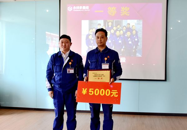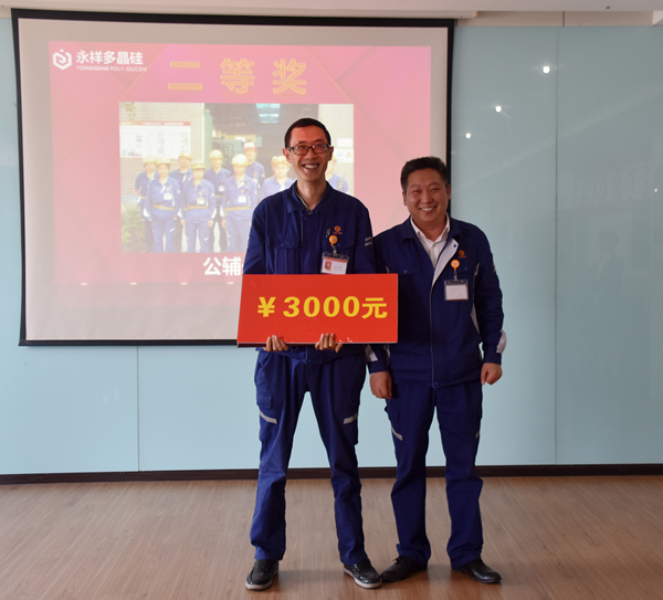 永祥股份董事、永祥多晶硅執(zhí)行總經(jīng)理甘居富為“管理提升工具運用”二等獎獲得工段頒獎