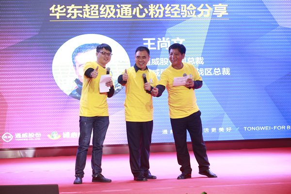 慶典上,通威股份副總裁兼華東戰區總裁王尚文與2016華東“超級通心粉”翁漢良、楊智超一同上臺,與大家分享2016年華東“超級通心粉”赴歐洲水產科技先進國家學習、訪問心得。隨后,通威股份副總裁兼華中一區總裁沈金竹、通威股份華中二區總裁幸鵬從劉漢元主席手中正式接過了“超級通心粉”活動旗幟。沈總表示,2017尋找華中“超級通心粉”活動將進一步助力華中戰區的市場營銷,通過深度聯動戰區客戶、粉絲,打通線上線下服務和推廣渠道,借勢拓展新客戶,全面助推華中一區2017年各項任務指標的順利完成。幸總表示,本次活動給了華中二區借助網絡和社交來創新營銷及服務的好機會,華中二區將把活動與拿水面、料檔結構調整等全年重點工作緊密結合,把活動辦得出彩、辦出實效、辦出成績,助力華中二區創造新價值、鑄就新輝煌!
