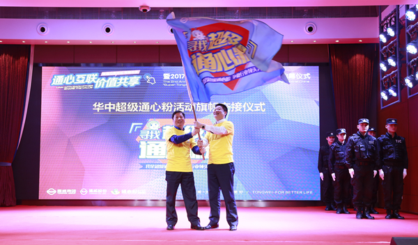 通威股份副總裁兼華中一區總裁沈金竹、通威股份華中二區總裁幸鵬接過“2017尋找超級通心粉”活動大旗