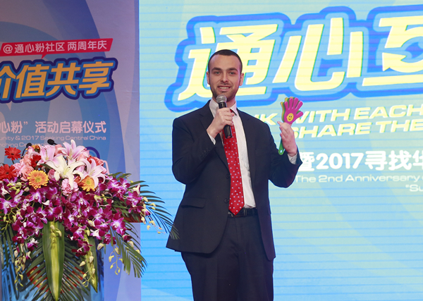 來自美國的猶太小伙歐陽墨翟,如今在成都養殖三文魚,作為“國際通心粉”的代表,歐陽在社區兩周年生日party這一特殊的場合,登臺獻上了生日祝福。第49屆國際小姐中國區總冠軍、“中國小姐”王芊作為“通心粉社區”愛心大使出席儀式并獻上精彩朗誦《和你在一起》,現場還舉行了搶紅包等趣味活動。