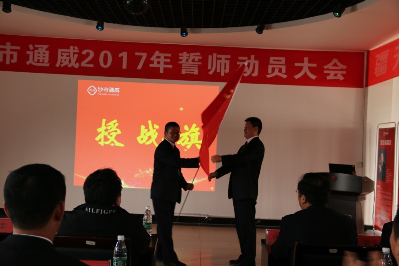 會議對2016年優(yōu)秀員工進(jìn)行了表彰,同時確立了2017年銷量計劃,并對各部門新一年工作開展提出了具體要求。最后,莊嚴(yán)的授旗儀式將大會推向了高潮,在嘹亮的團隊口號中,戰(zhàn)旗迎風(fēng)舞動,各個團隊分別以自己獨有的方式表達(dá)了對于完成2017年目標(biāo)的信心與決心。在立下軍令狀的那一刻,雷鳴般的掌聲響徹現(xiàn)場。