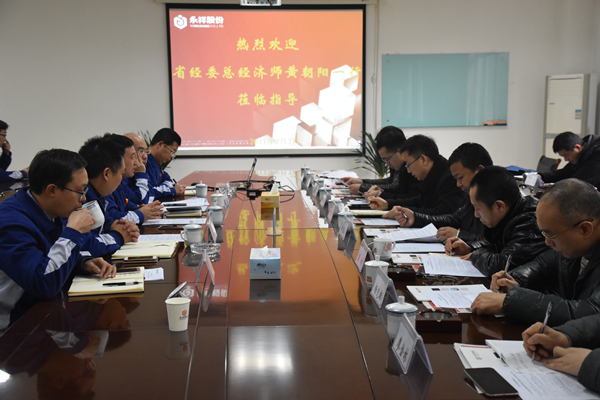 段雍董事長向黃朝陽總經(jīng)濟師介紹永祥循環(huán)經(jīng)濟產(chǎn)業(yè)鏈發(fā)展情況
