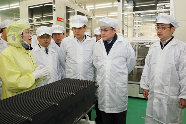 畢力夫書記一行參觀通威太陽能(成都)有限公司s1電池車間