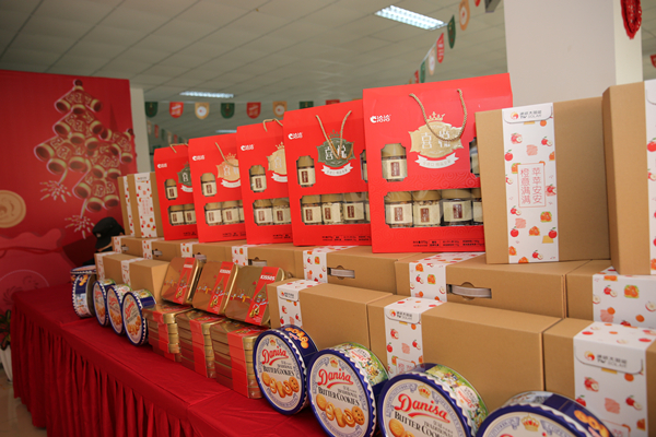 與此同時,成都公司豐富的新春禮品包,喜氣洋洋的祝福展板讓整個廠區溫情滿滿,喜悅多多。蘋果與橙子拼成的水果大禮包,寓意著 “橙意滿滿,蘋蘋安安”,光是這份用心就足夠感動大家。此外,甜甜的巧克力、精心包裝的堅果大禮盒更是讓驚喜一波接著一波。