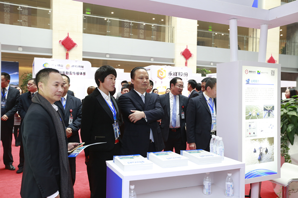 在漁光物聯(lián)公司的展位前,饒勇總經(jīng)理向劉主席及一行領(lǐng)導(dǎo)介紹2016年工作亮點。