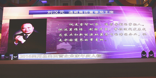 劉漢元主席榮獲“2016四川杰出民營企業(yè)家年度人物”
