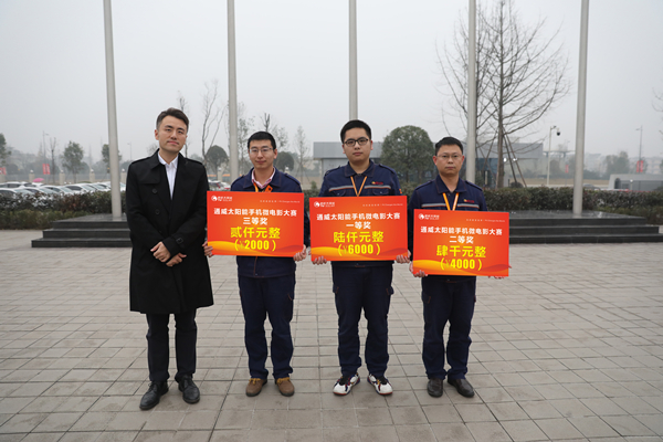 12月19日,通威太陽能手機微電影大賽頒獎儀式在合肥、成都兩地升旗廣場同步舉行,通威太陽能(合肥、成都)有限公司高管團隊分別為兩地獲獎團隊頒獎。