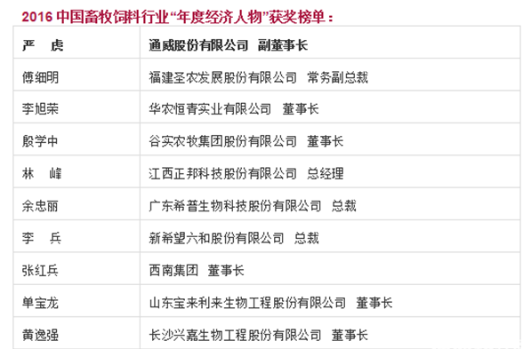 12月10日-11日,2016年第十三屆中國畜牧飼料科技與經濟高層論壇在北京會議中心隆重舉行,本次論壇由中國飼料工業(yè)協(xié)會指導,中國林牧漁業(yè)經濟學會飼料經濟專業(yè)委員會主辦。中國林牧漁業(yè)經濟學會飼料經濟專業(yè)委員會理事長蔡輝益主持論壇開幕式,十一屆全國政協(xié)常委、通威集團董事局劉漢元主席受邀致開幕詞,農業(yè)部畜牧業(yè)司副司長王俊勛致歡迎詞,全國畜牧總站站長、中國飼料工業(yè)協(xié)會常務副會長、秘書長楊振海,中國畜牧業(yè)協(xié)會常務副會長、農業(yè)部畜牧總站原站長李希榮等領導發(fā)表講話,廣大協(xié)會專家、行業(yè)領軍人物、學術界知名經濟學家等共襄盛會。通威股份嚴虎副董事長、通威股份水產技術總監(jiān)張璐、通威股份總裁助理兼華北戰(zhàn)區(qū)總裁周澎出席論壇。論壇期間還隆重舉行了“通威杯·中國畜牧飼料年度頒獎盛典”,通威股份嚴虎副董事長榮獲“十大年度經濟人物”稱號,通威“漁光一體”養(yǎng)殖模式集成技術及其產業(yè)化榮獲“十大科技產業(yè)化進步獎”。