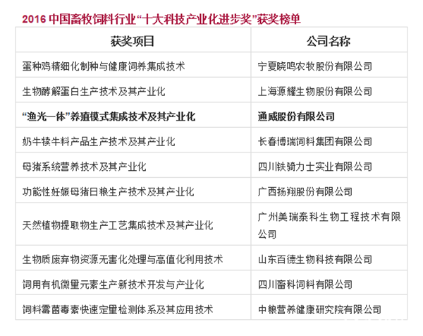 頒獎儀式上,通威“漁光一體”養(yǎng)殖模式集成技術及其產業(yè)化榮獲“十大科技產業(yè)化進步獎”,通威股份嚴虎副董事長榮獲“十大年度經濟人物”稱號。通威股份成為本次盛典唯一榮獲兩項殊榮的公司,更加彰顯了通威技術領航與創(chuàng)新發(fā)展的實力。獲獎企業(yè)對于推進我國養(yǎng)殖行業(yè)向規(guī)模化、集約化、生態(tài)化發(fā)展,以及提供安全、綠色食品的堅定信念及所作出的努力得到現場嘉賓們的高度認可。